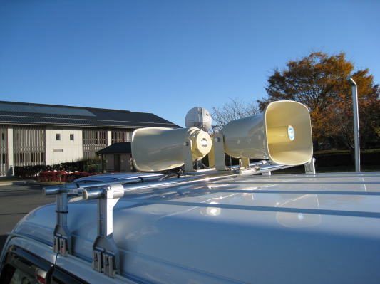 拡声用音響装置のメーカーです。弊社では車載用拡声装置がよく売れています。テープの代わりにSDカードを利用するタイプが現在の主流で、MP3の音源を再生できます。音の品質も良く、選挙用・防犯パトロール・販売用車両等様々な分野で利用されています。取付け作業も承っておりますので、お気軽にご相談下さい。
